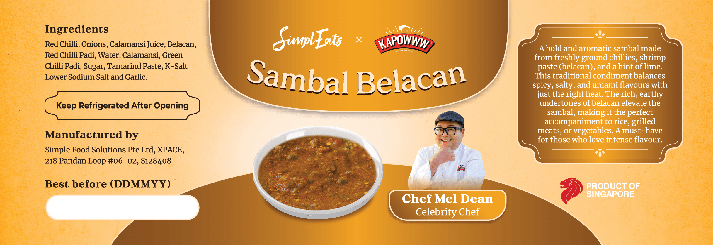 A bold and aromatic sambal made from freshly ground chillies, shrimp paste (belacan), and a hint of lime. This traditional condiment brings together a delightful balance of spicy, salty, and umami flavours, with just the right amount of heat. The rich, earthy undertones of the belacan elevate the sambal to a whole new level, making it the perfect accompaniment to rice, grilled meats, or vegetables. A must-have for anyone who loves a punch of intense flavour with every bite.
